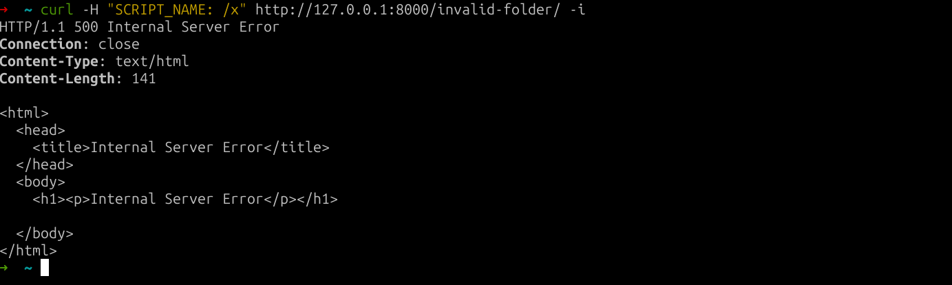 fig. 99: 500 response when the path doesn't match SCRIPT_NAME.