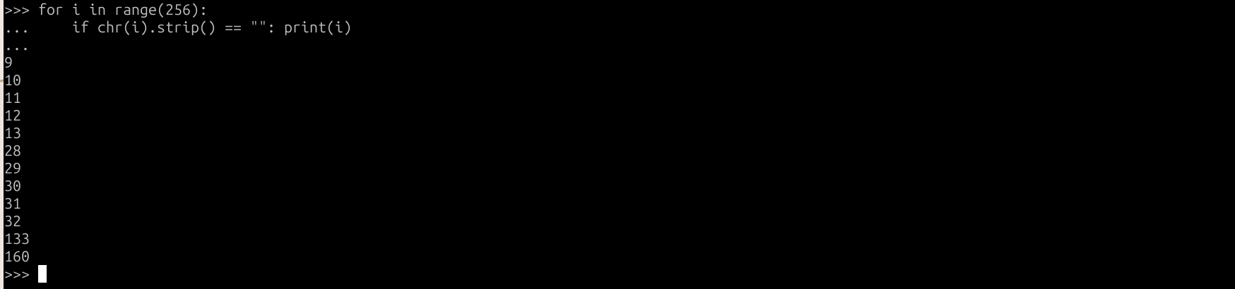 if chr(i).strip() == "": print(i)