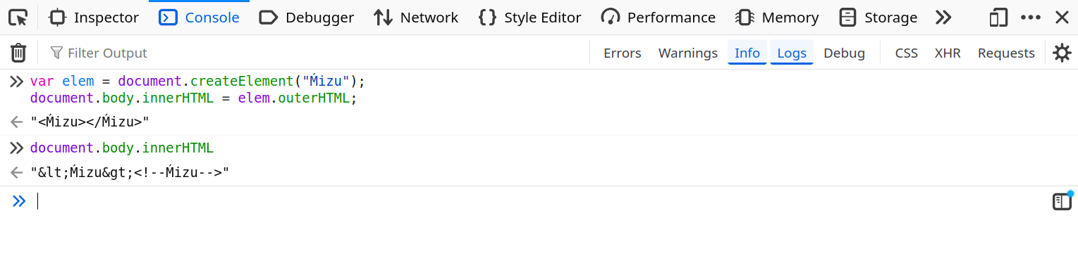 Indeed, this would only be the case if Firefox's internal normalization were the same as JavaScript's toLowerCase! With that in mind, a simple fuzzer allows us to find that \u0130nsertHTML bypasses the check!